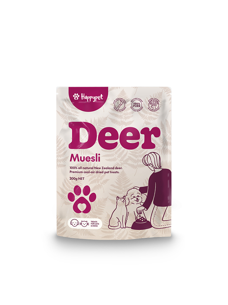 旗下品牌Happypet的产品源自群山环绕、空气清新的瓦纳卡岛。岛上马鹿自由奔跑,自然生长,肉质细嫩、营养丰富且低致敏,适合绝大多数宠物。其鹿肉零食不含添加剂,保留纯粹天然野味,满足宠物天性,每一口都饱含我们对宠物的爱。