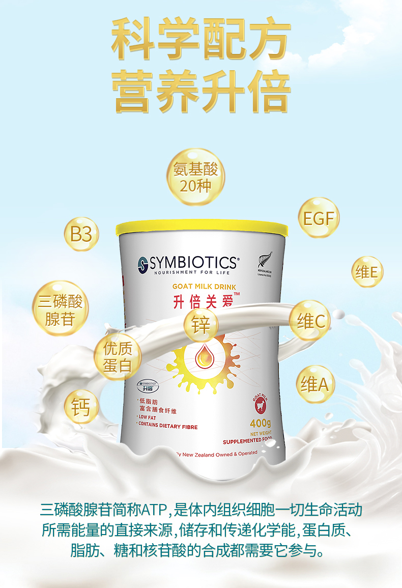 新西兰进口升倍成年人控糖羊奶粉固体饮料