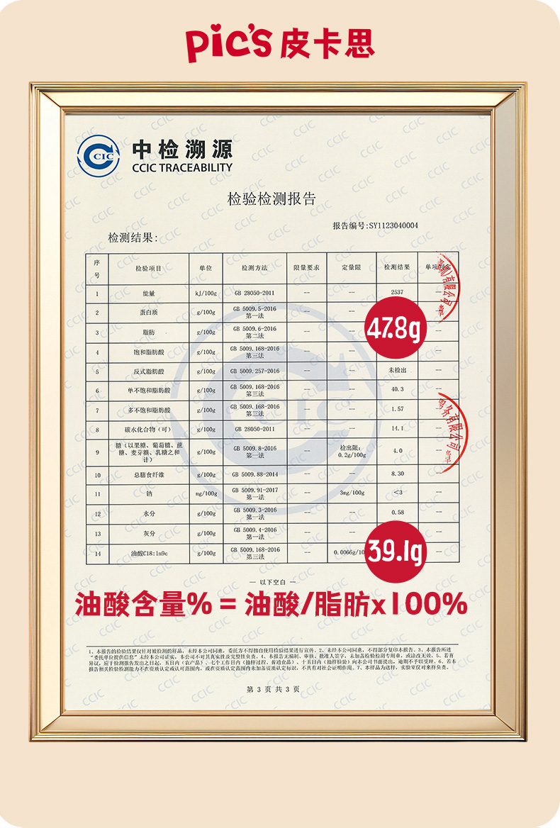 Hi-oleic peanuts 87%, Chis Seed 10%,peanut oil 3%