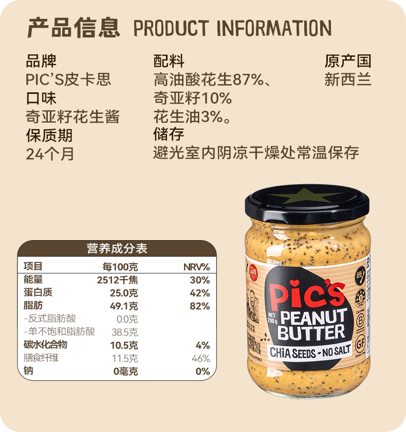 Crunchy peanut butter with crunchy chia seed, crispy and rich, double the satisfaction.