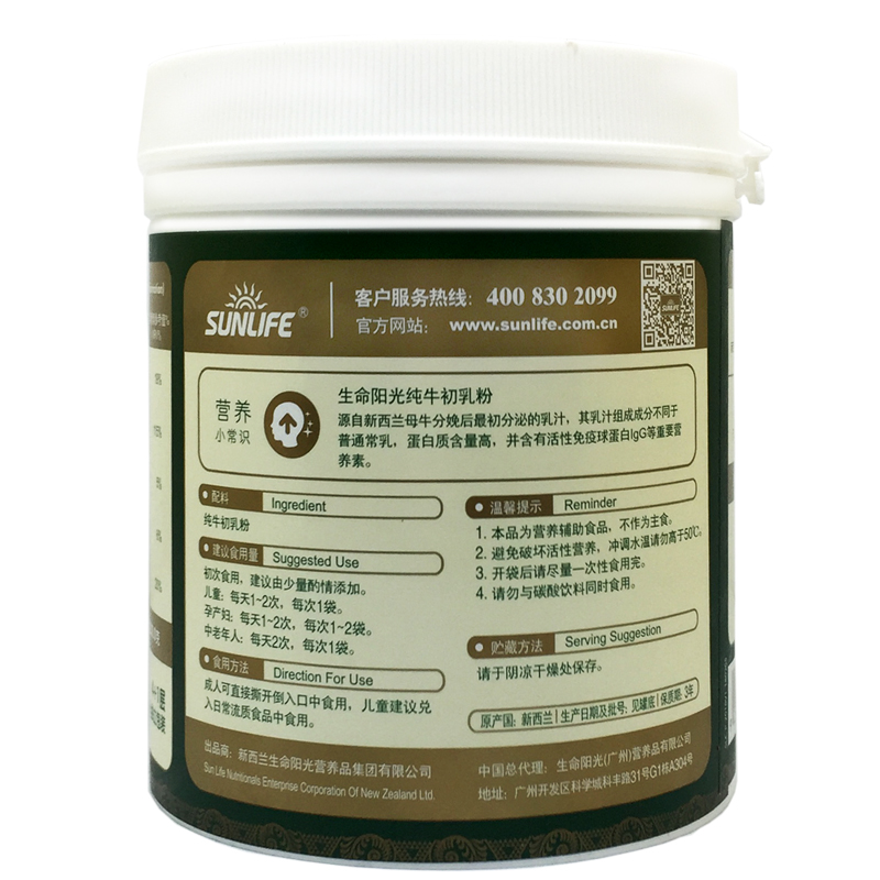 Sunlife Pure Colostrum Powder is a special kind of milk collected within 72hours after the cow calving.